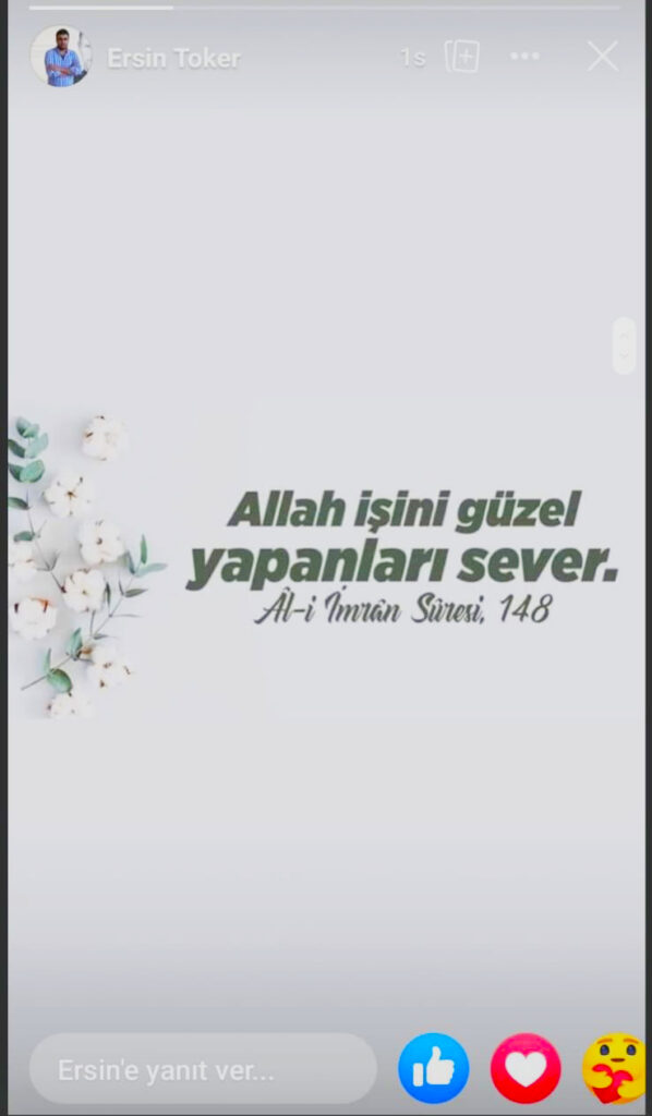 Bursaspor Kulübü Yönetim Kurulu Üyesi Ersin Toker, sosyal medya hesabından ‘Allah işini güzel yapanları sever‘ mesajı futbolculara cevap olarak nitelendirildi.