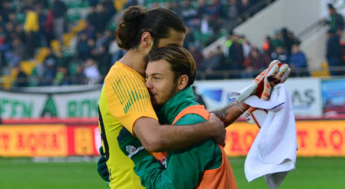 Maçta yedekler arasında yer alan Bursasporlu Yusuf Erdoğan Akhisarsporlu Fatih Öztürk ve Caner Osmanpaşa ile uzun süre sohbet etti.