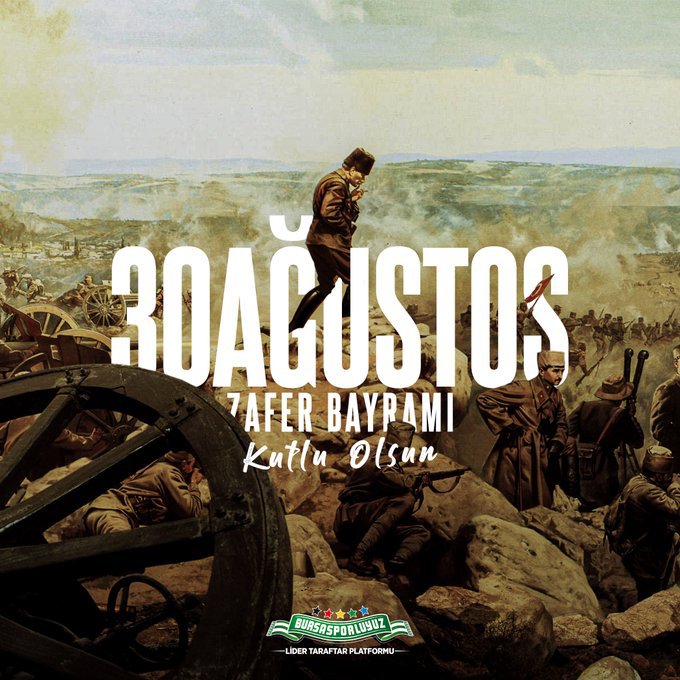 Bursasporluyuz ailesi olarak 30 Ağustos Zafer Bayramımızı en içten dileklerimizle kutluyoruz.